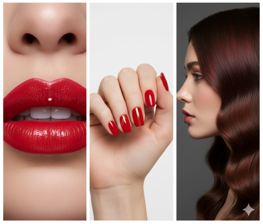 Maquiagem, unhas e cabelo são formas incríveis de incorporar o vermelho em 2026!